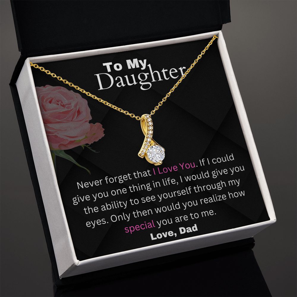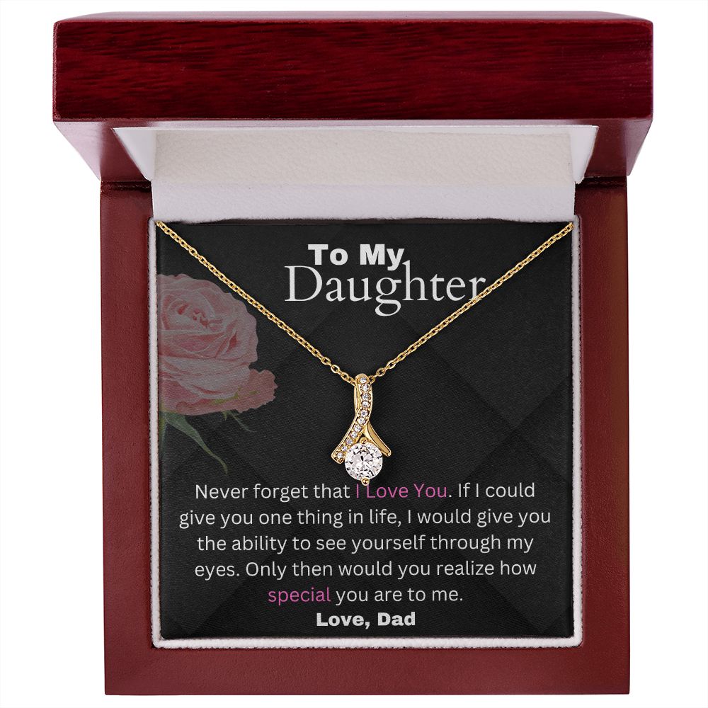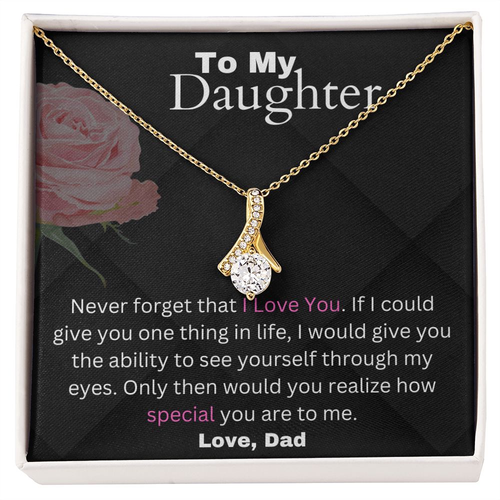 Never forget that I Love You. If I could give you one thing in life, I would give you the ability to see yourself through my eyes. Only then would you realize how special you are to me.