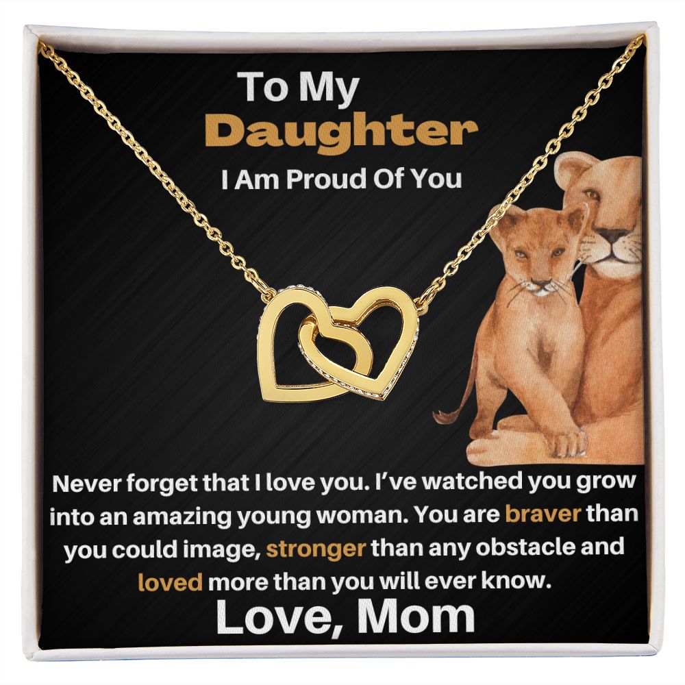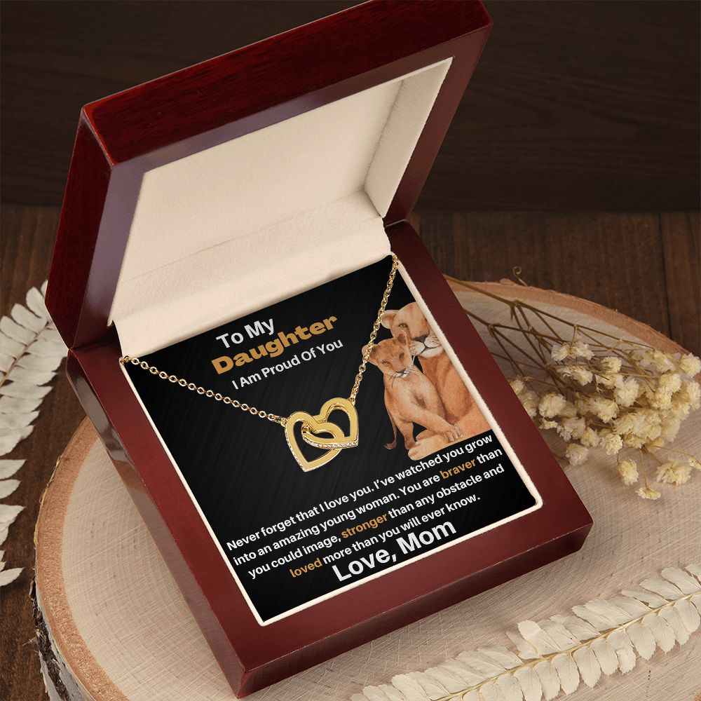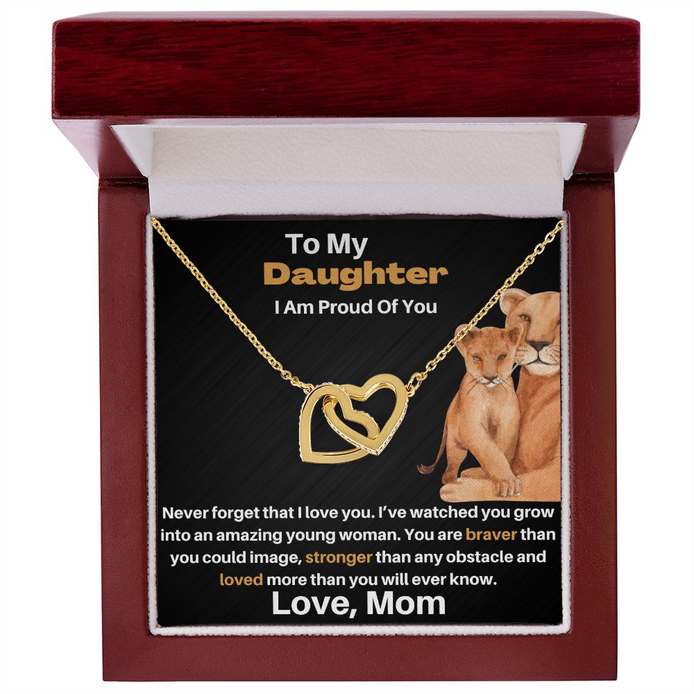 Daughter Gift - From Mom - Stronger Braver - Interlocking Hearts
