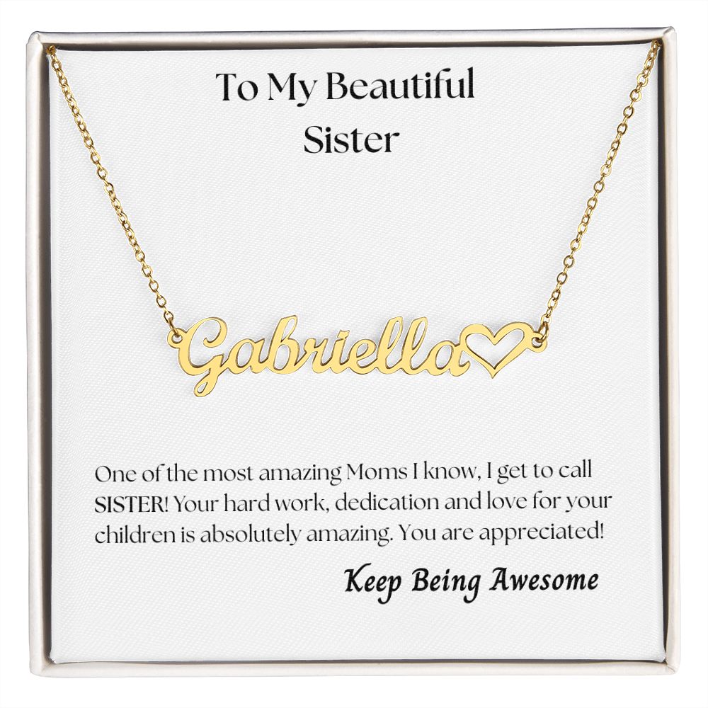 To My Beautiful Sister - Personalized Name Necklace with Heart