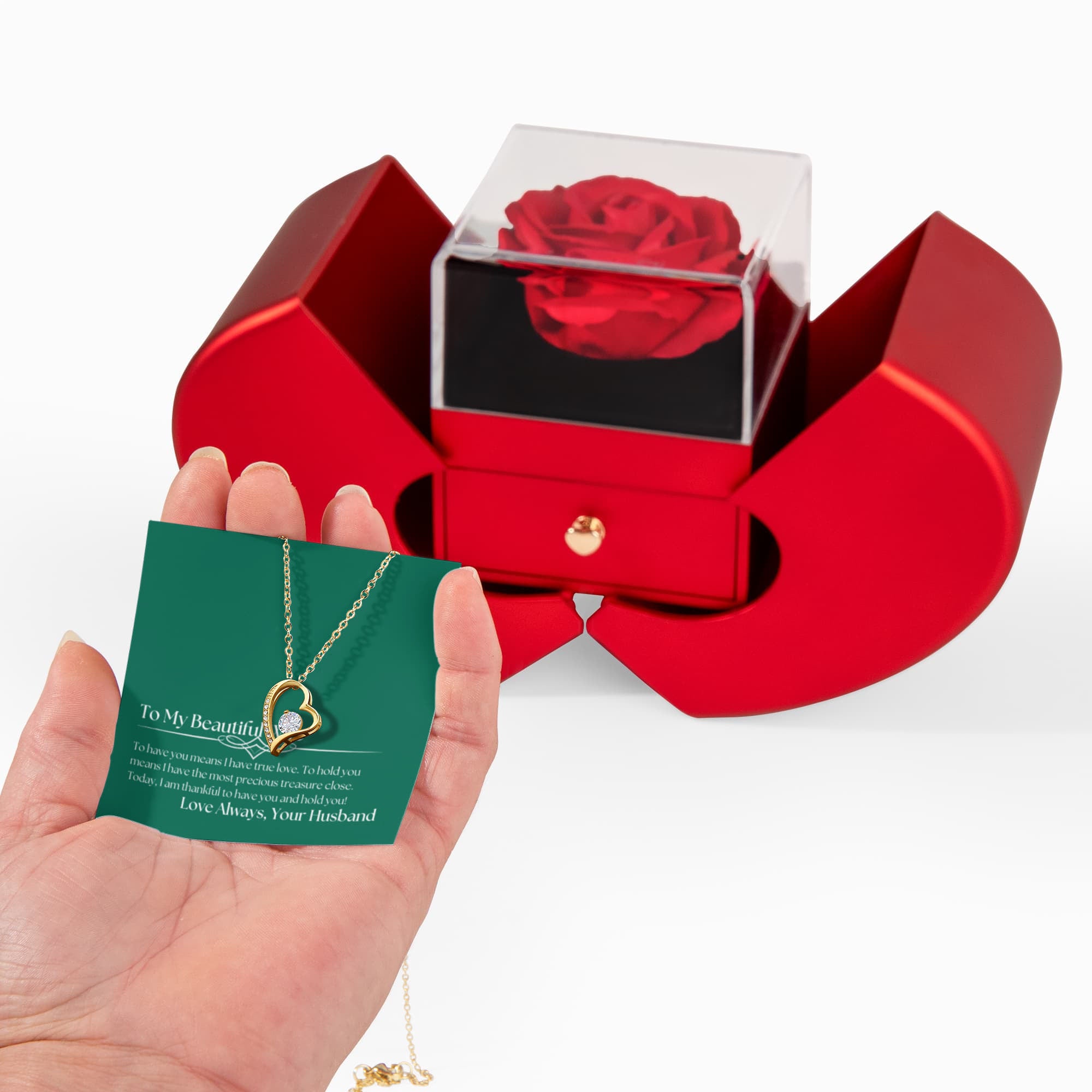 Create an unforgettable gifting experience with our elegant Forever Love Necklace and Heart Box gift set. The everlasting rose symbolizes eternal love, while the sparkling necklace serves as the perfect token of your love. Ideal for birthdays, anniversaries, or any special occasion, this beautiful package is guaranteed to make your loved one feel truly cherished and appreciated.